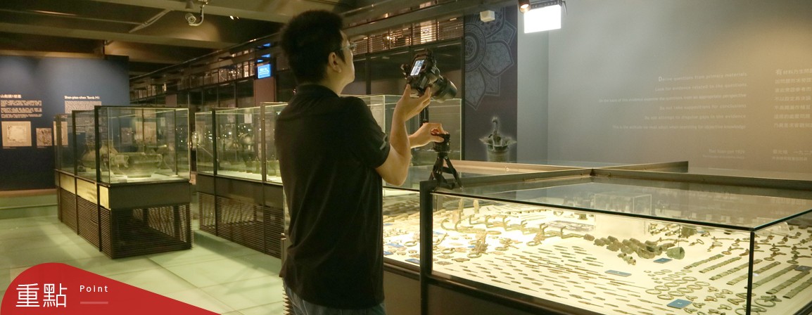 ▲要製作充滿沉浸感的環景內容,現場拍照時包括光線、反射…等細節都必須精準考慮。照片為史博館「東周實相」側拍花絮。